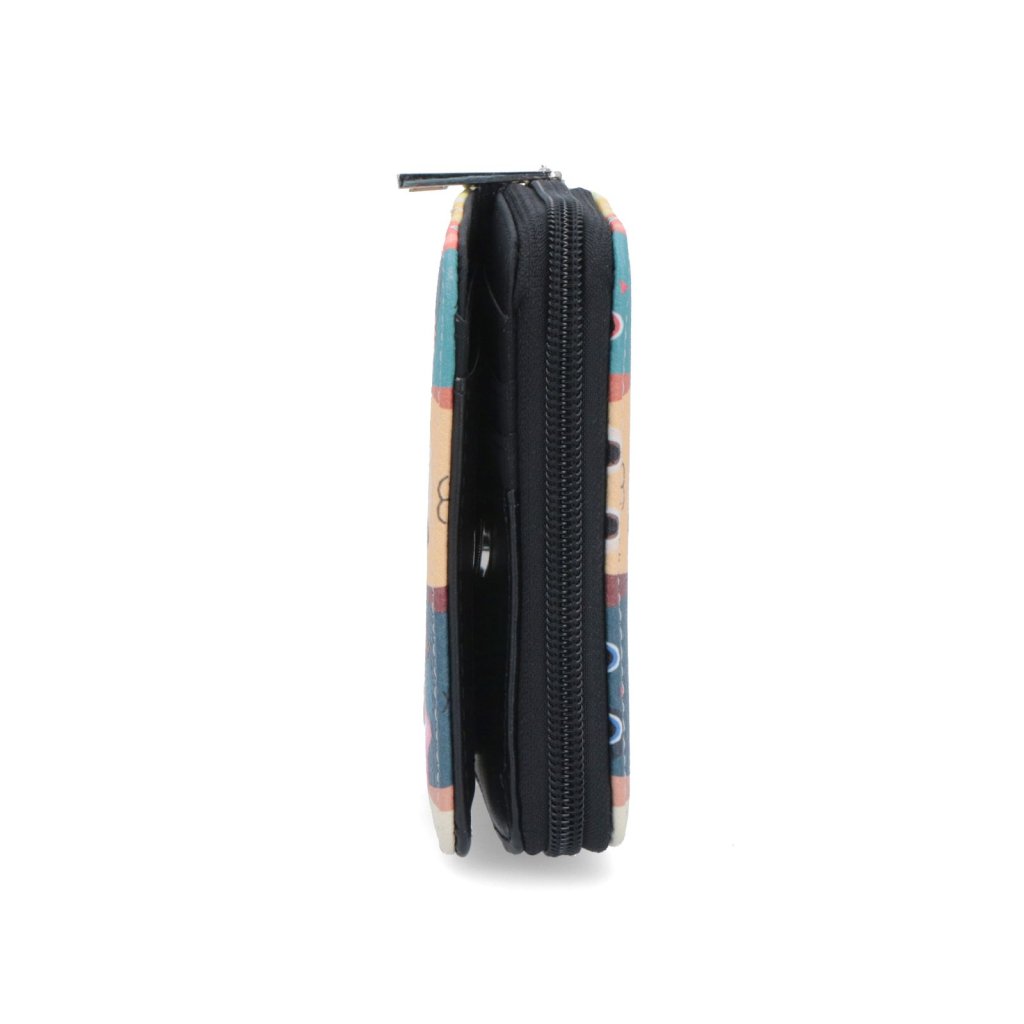 Dámská designová peněženka se zipem, zapínáním na cvoček a s barevným potiskem. Peněženka obsahuje:- 1 přihrádku na bankovky.