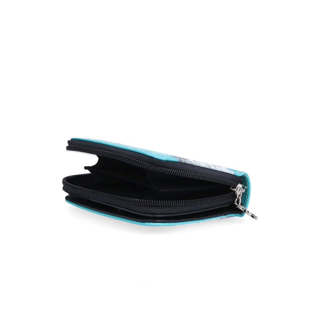 Dámská designová peněženka se zipem, zapínáním na cvoček a s barevným potiskem. Peněženka obsahuje:- 1 přihrádku na bankovky.