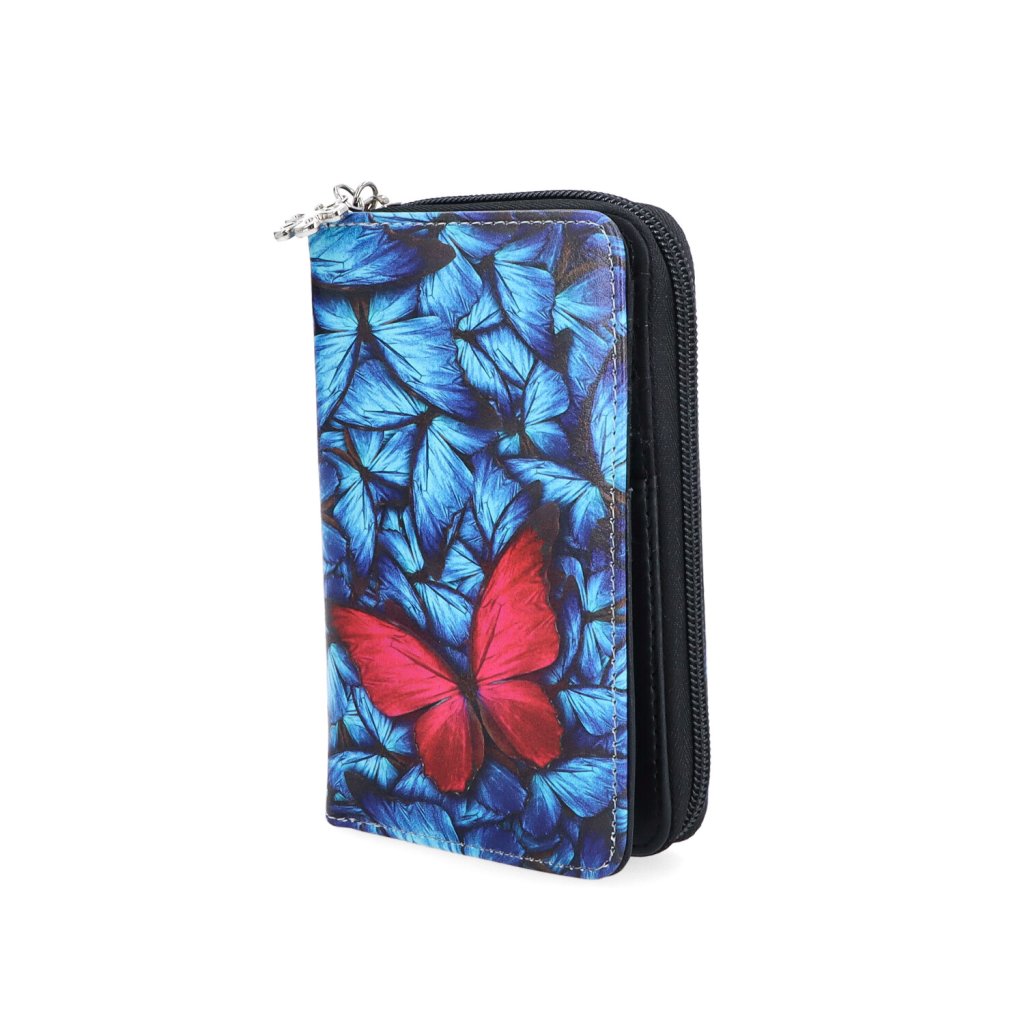 Dámská designová peněženka se zipem, zapínáním na cvoček a s barevným potiskem, peněženka obsahuje:- 1 přihrádku na bankovky.