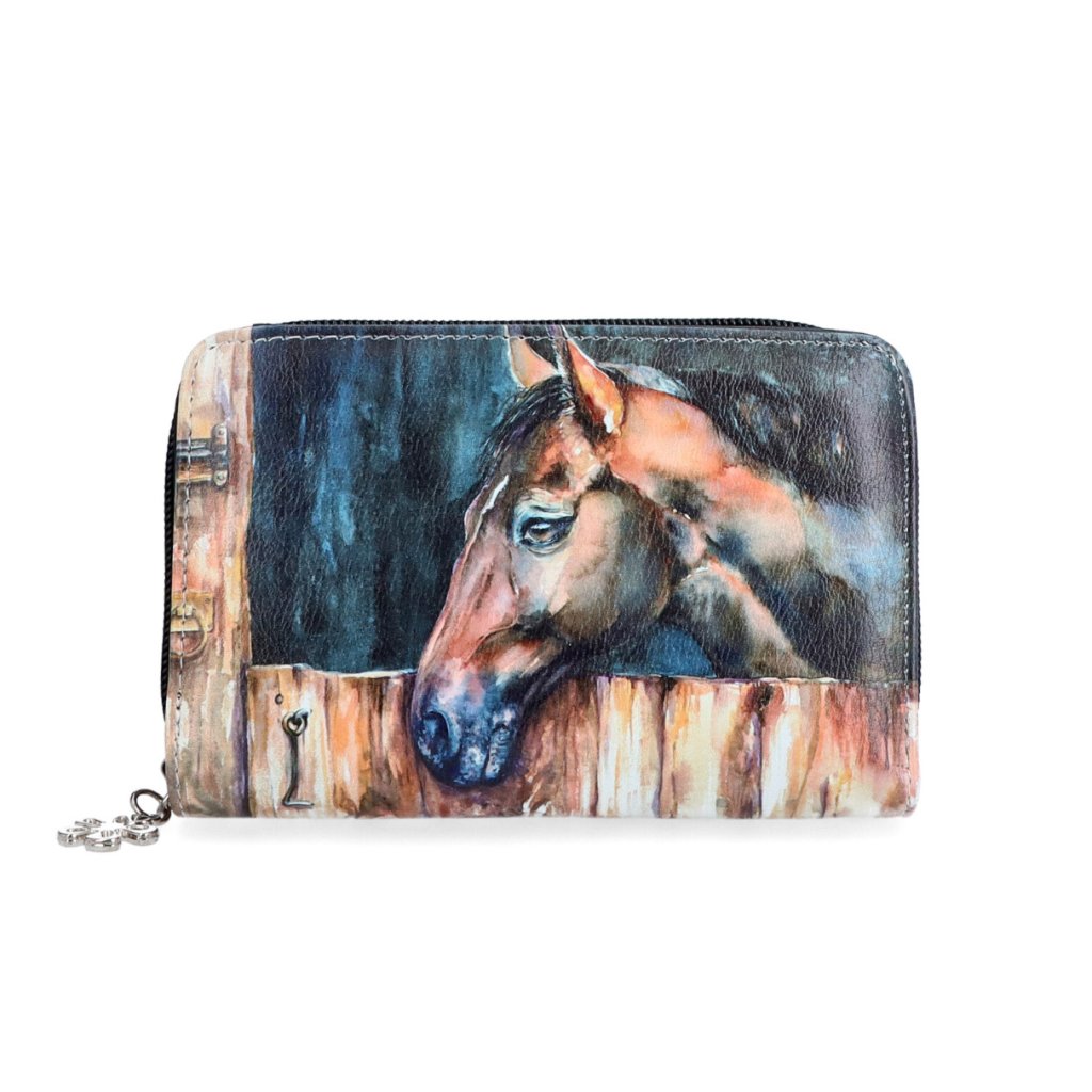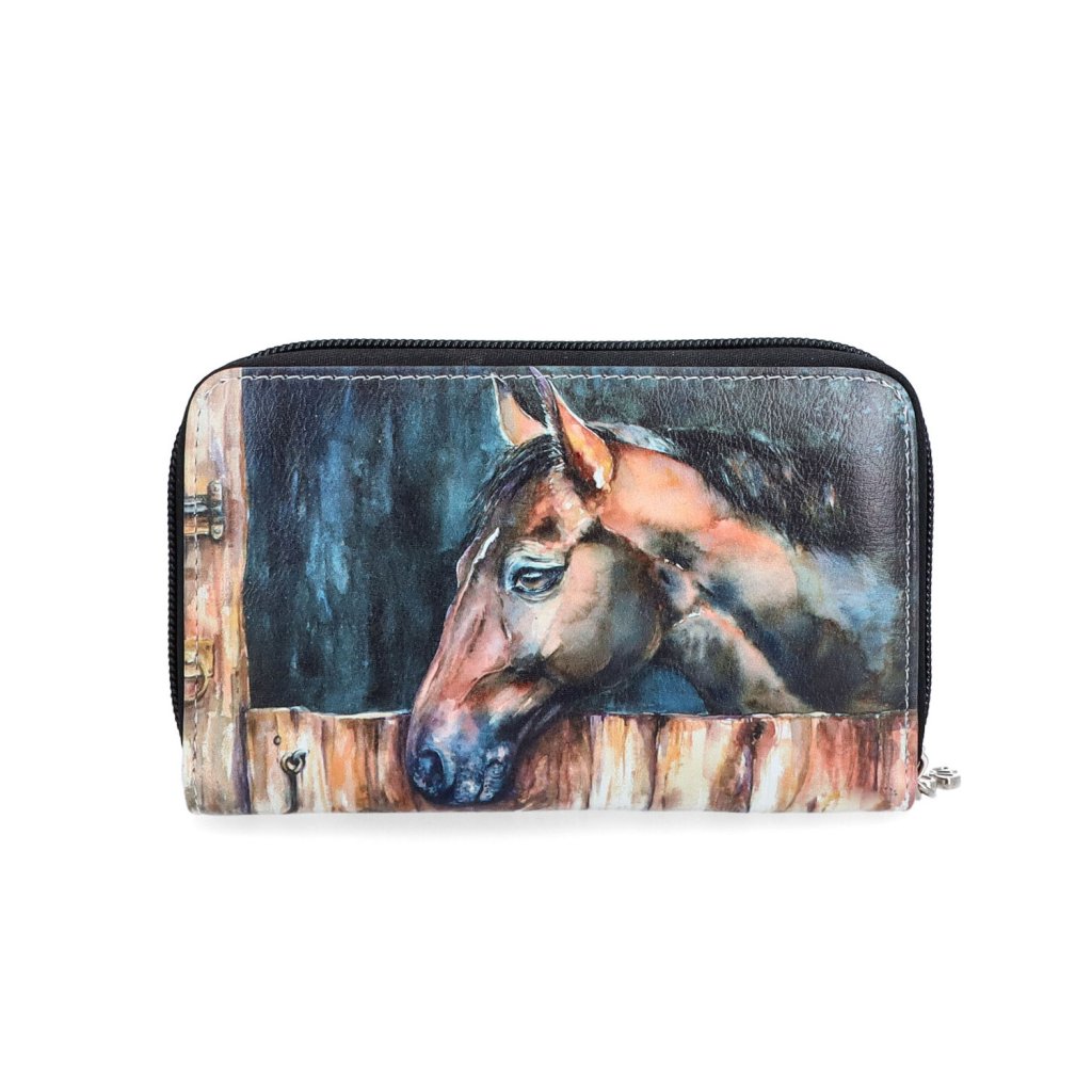 Dámská designová peněženka se zipem, zapínáním na cvoček a s barevným potiskem, peněženka obsahuje:- 1 přihrádku na bankovky.