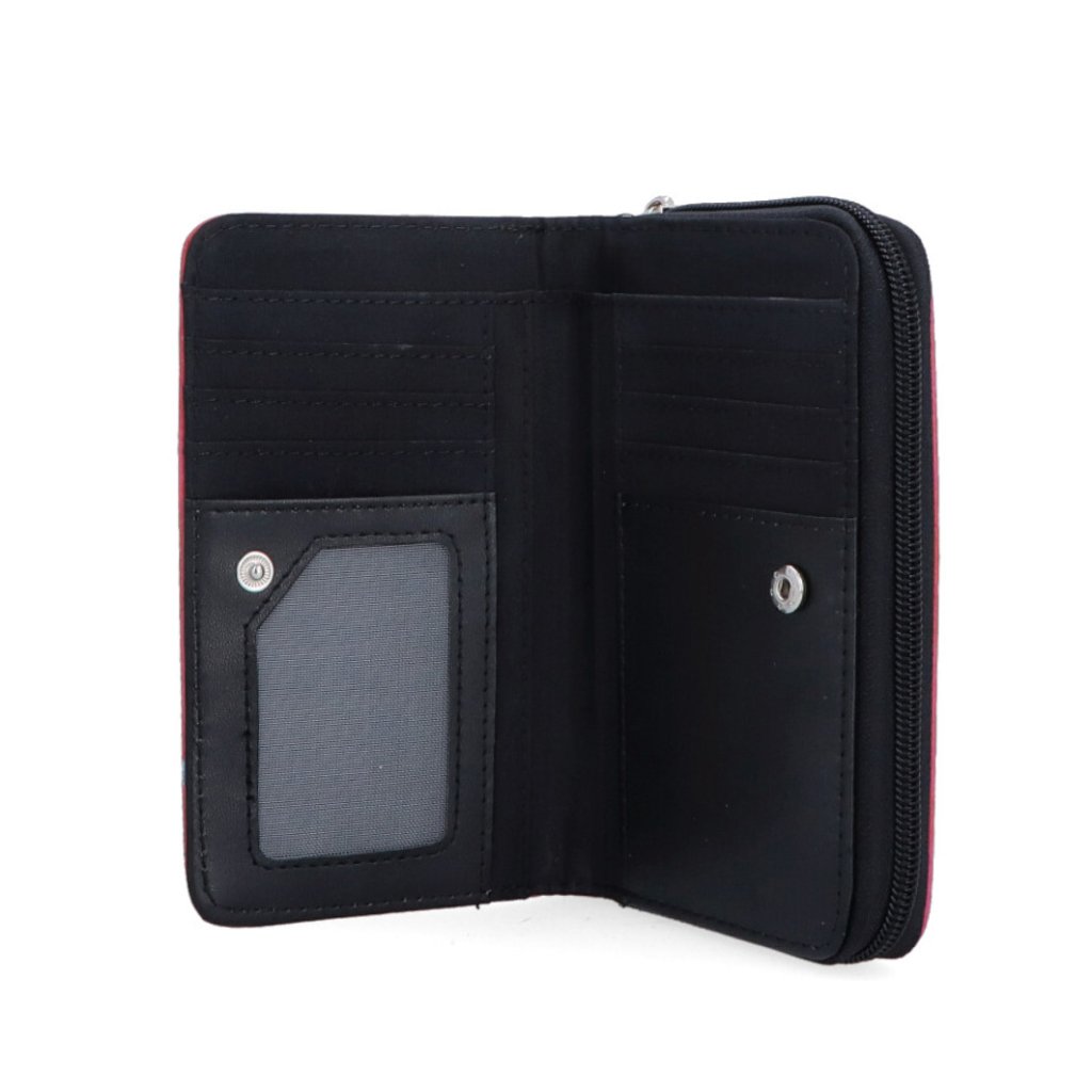 Dámská designová peněženka se zipem, zapínáním na cvoček a s barevným potiskem, peněženka obsahuje:- 1 přihrádku na bankovky.