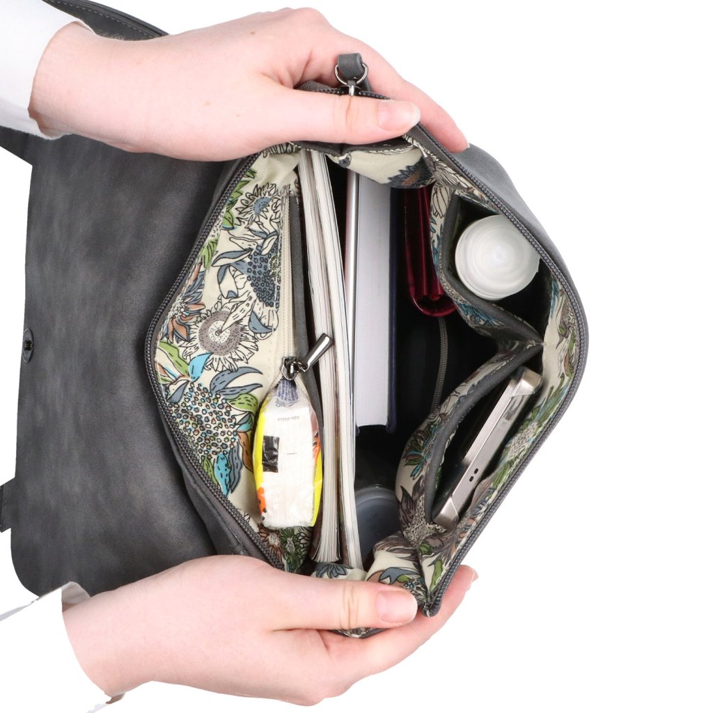 - Uvnitř naleznete jednu menší zipovou kapsu a dvojkapsu na drobnosti.