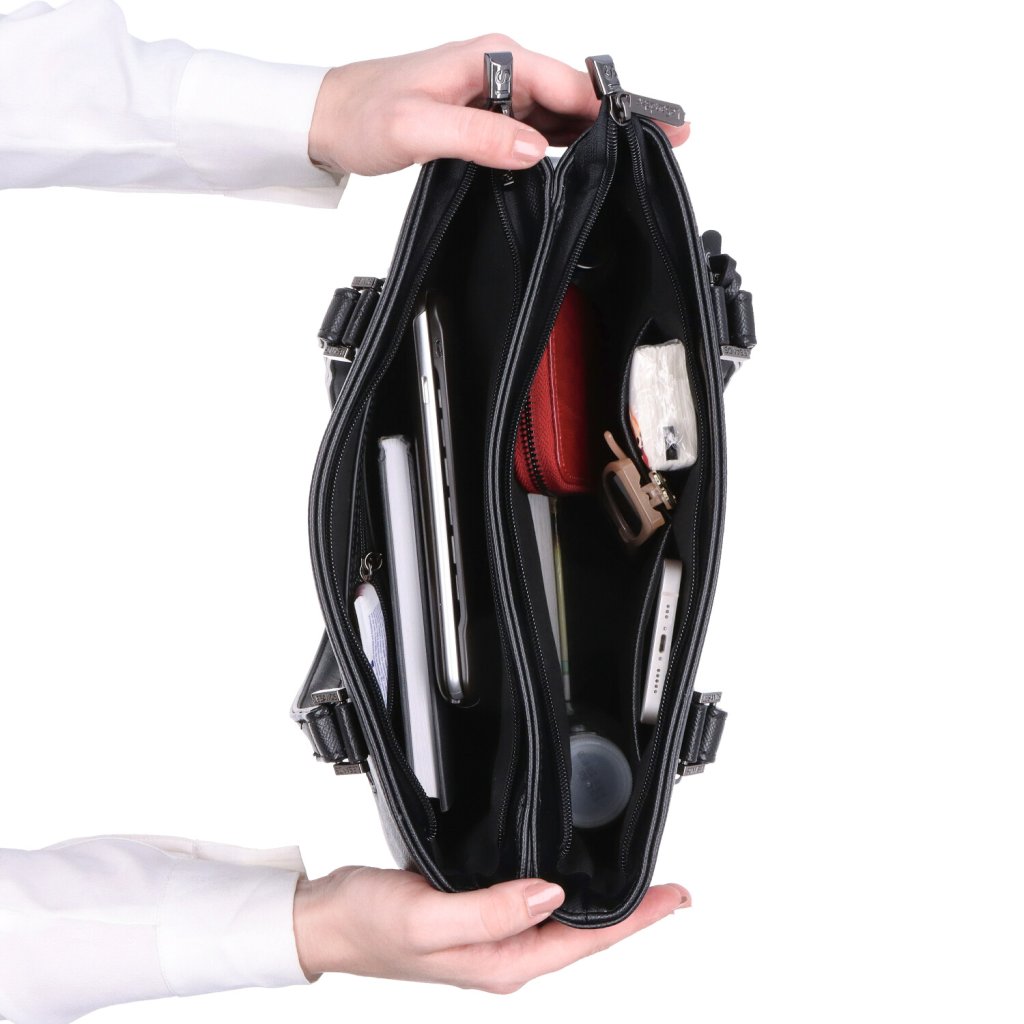 - Uvnitř jsou dvě kapsy a jedna kapsa na zip.