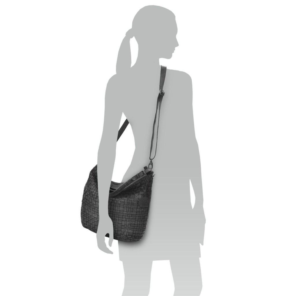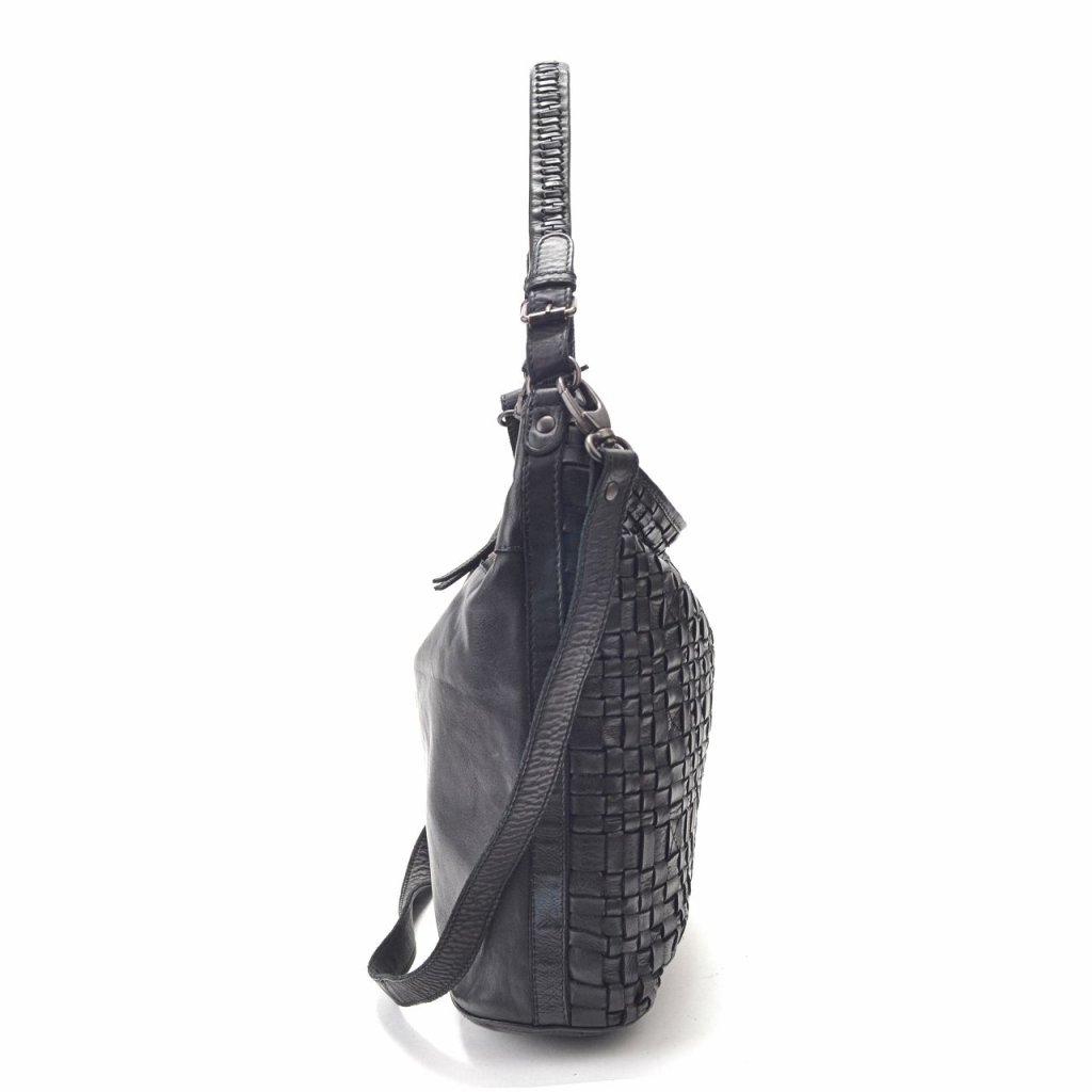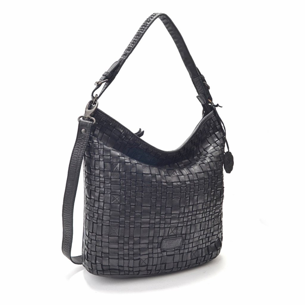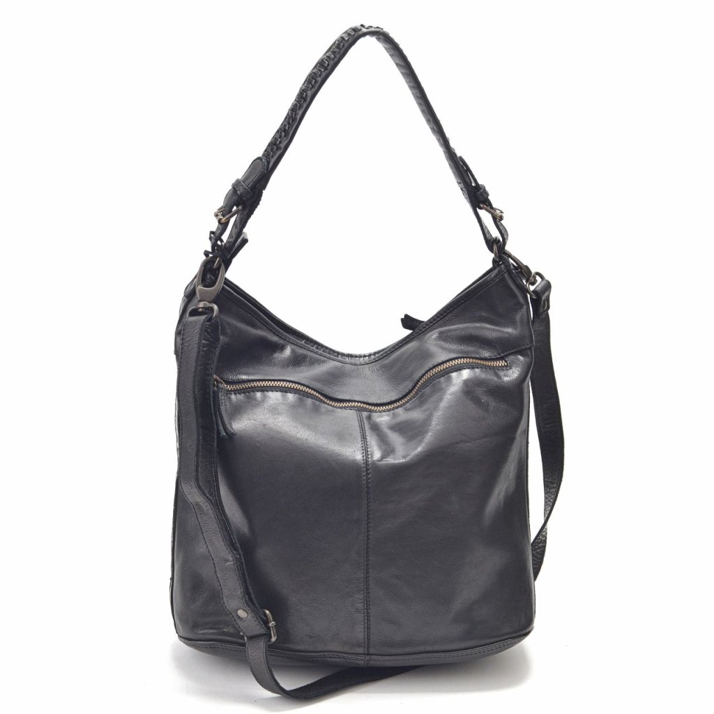 Černá kožená kabelka přes rameno ve vintage stylu- Vzadu se nachází praktická zipová kapsa.