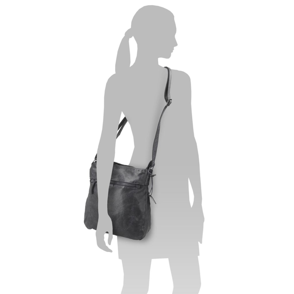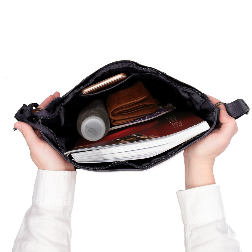 Kožená crossbody kabelka ve vintage stylu- Kabelka má dva hlavní prostory uzavíratelné na zip.