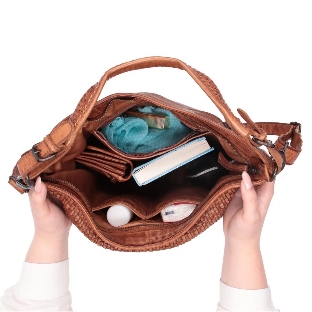 Kožená kabelka přes rameno ve vintage stylu- Vzadu se nachází praktická zipová kapsa.