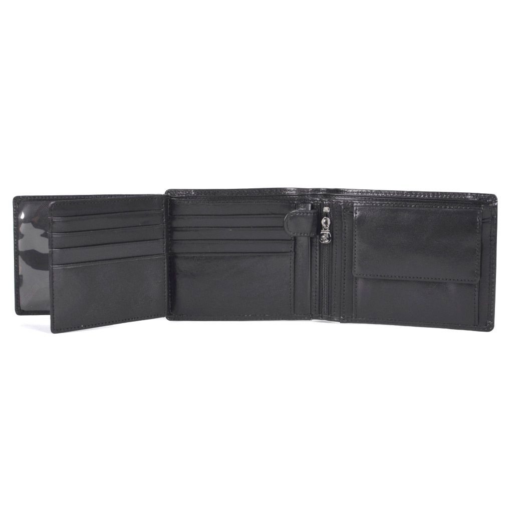 Pánská kožená peněženka na šířku. Uvnitř se nachází:- 2 přihrádky na bankovky