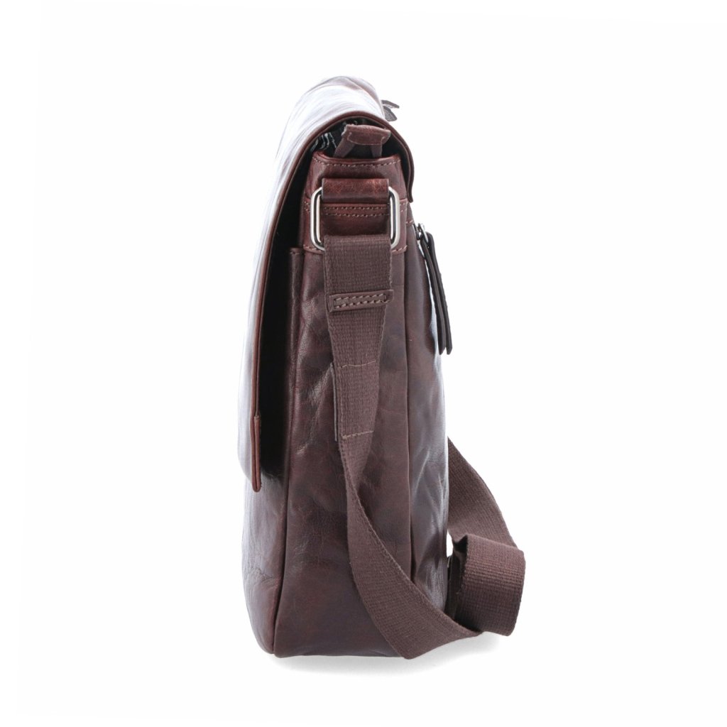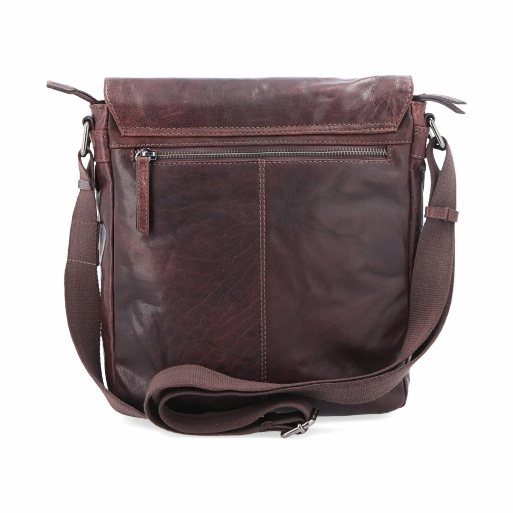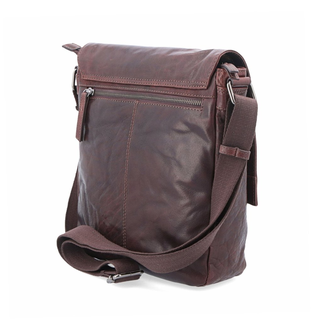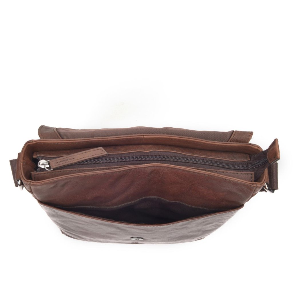Kožená crossbody taška s klopou- Hlavní prostor je uzavíratelný na zip a obsahuje jednu zipovou kapsu a dvě menší kapsy na drobnosti.