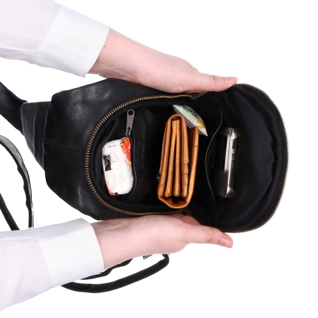 Bodybag z pravé kůže- Bodybag se uzavírá na zip.