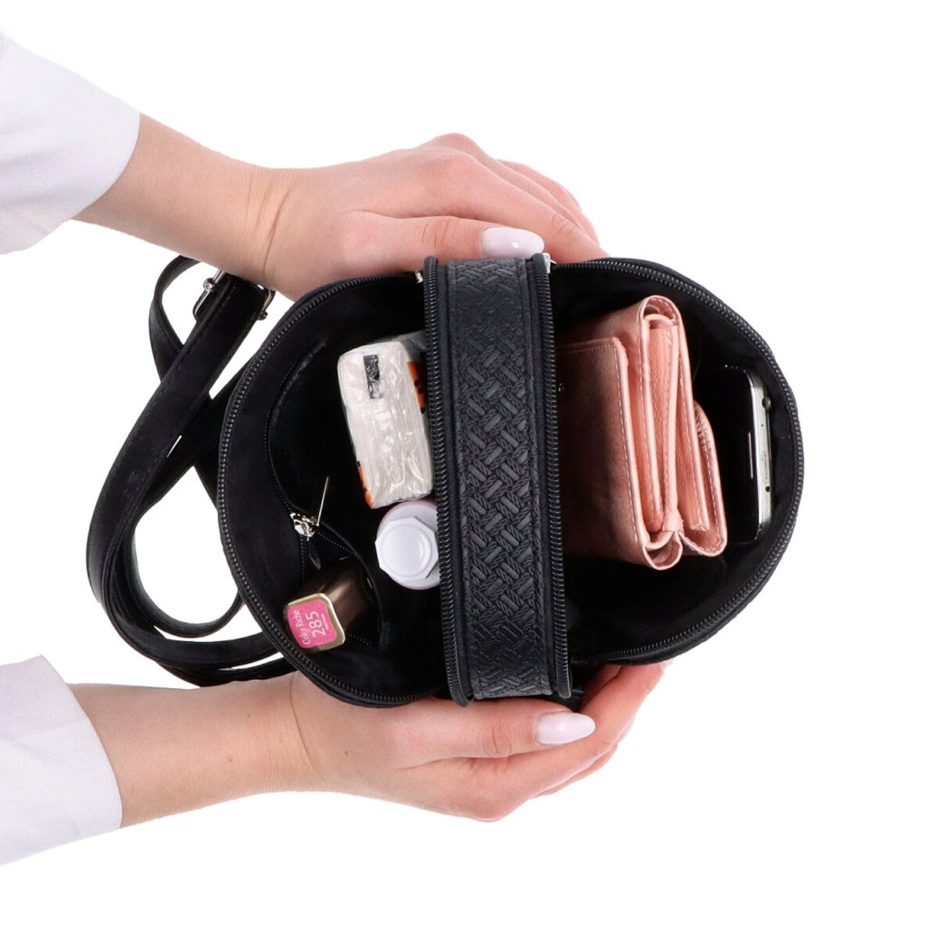 Syntetická kabelka Carmelo- Hlavní prostor kabelky se dělí na dvě kapsy a otevírají se na zip