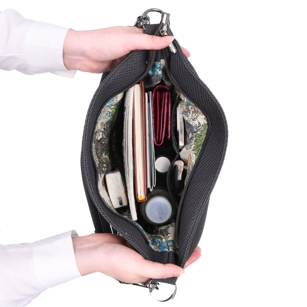 Kabelka ve stylu Hobo Bag.- Hlavní prostor kabelky se otevírá na zip.