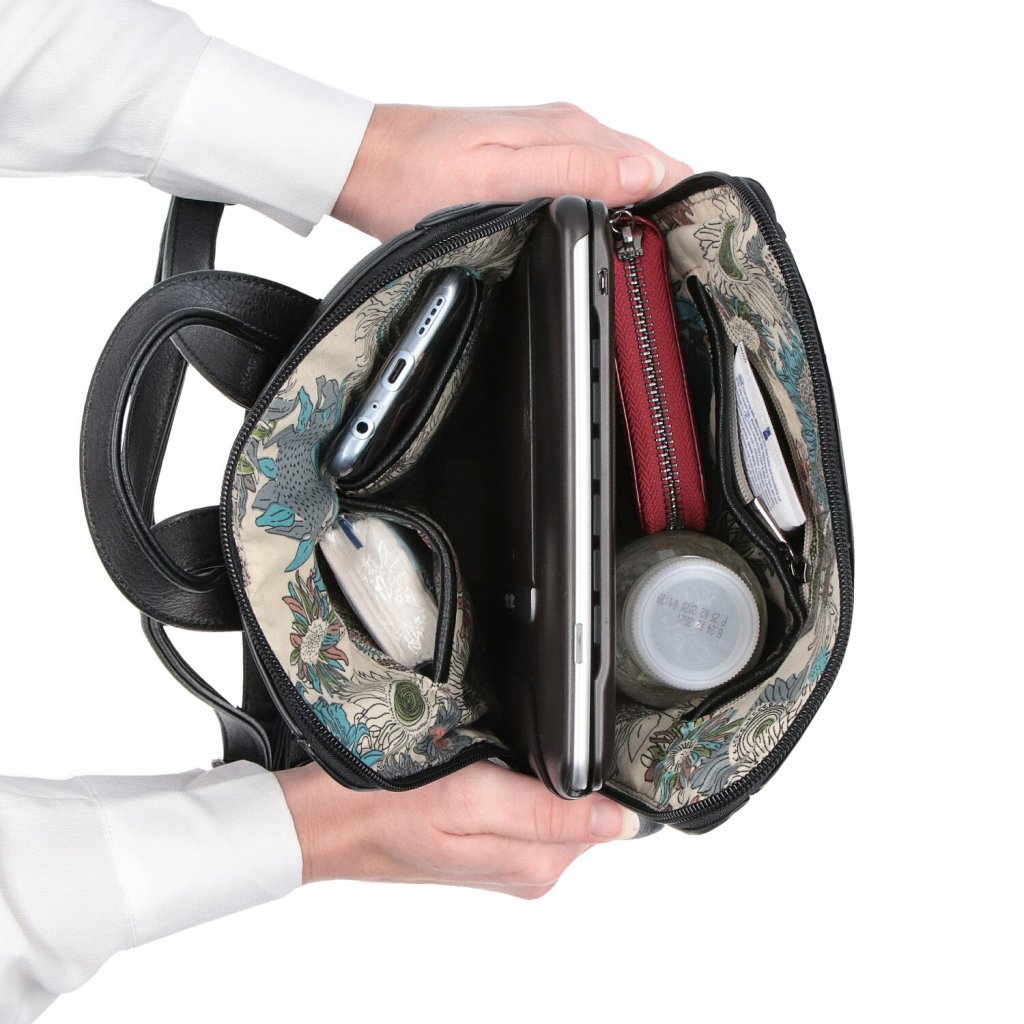 - Uvnitř jsou dvě kapsy a jedna kapsa na zip