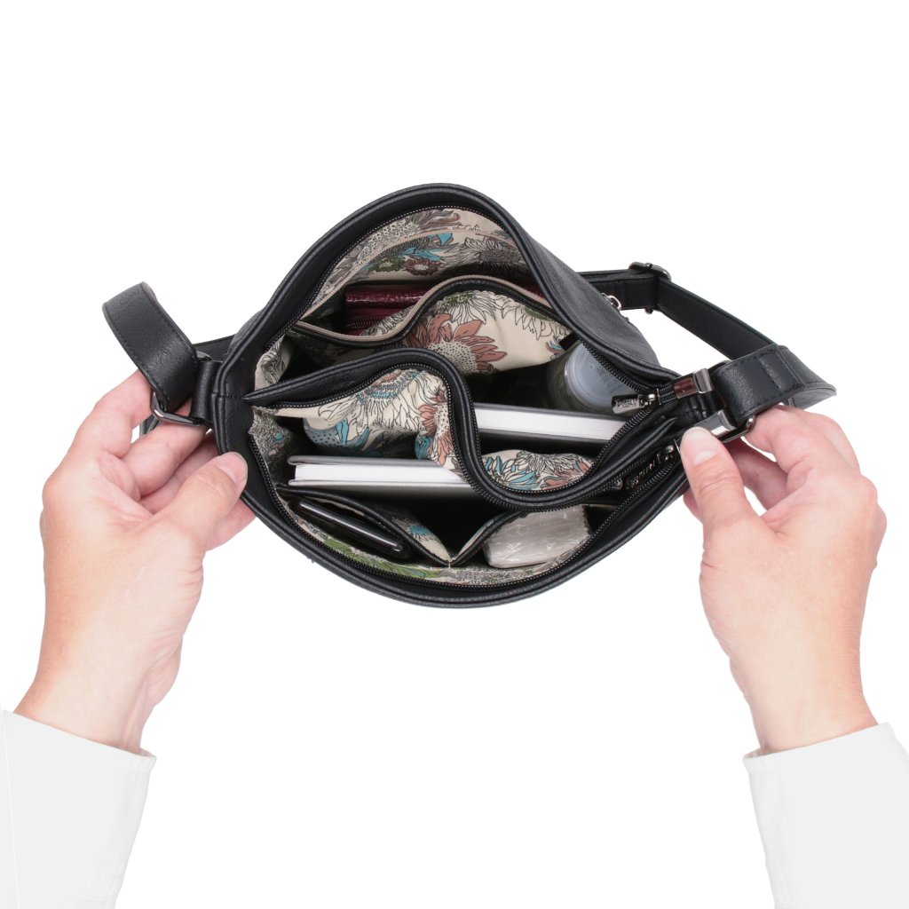 Designová crossbody kabelka- Na přední i zadní straně se nachází praktická zipová kapsa.
