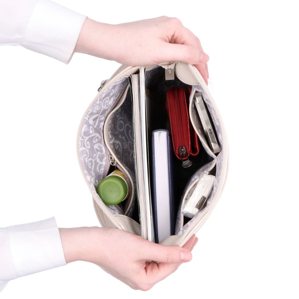 - Uvnitř naleznete jednu menší zipovou kapsu a dvojkapsu na drobnosti.
