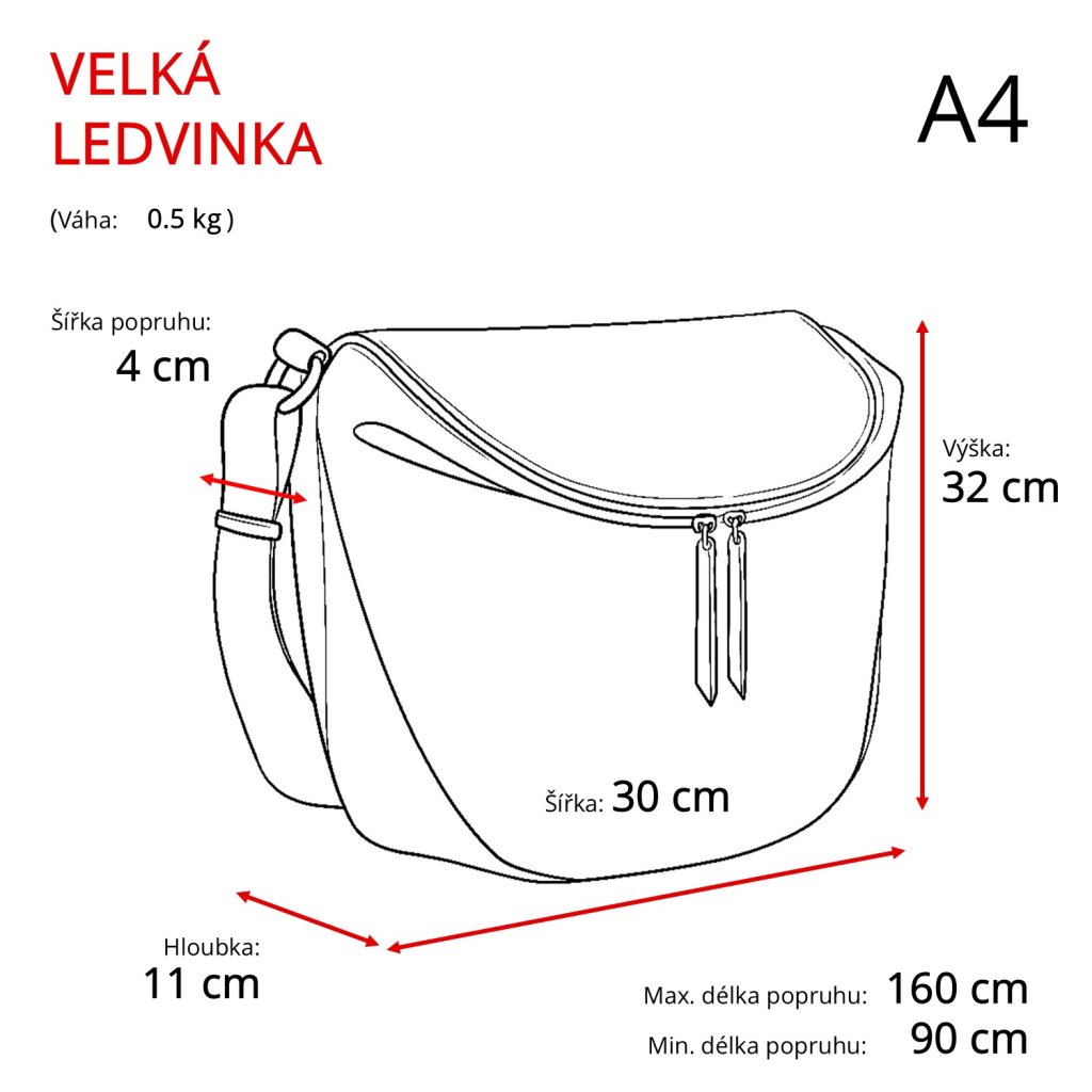 - Horní délka ledvinky je 35 cm a spodní délka ledvinky je 25 cm.